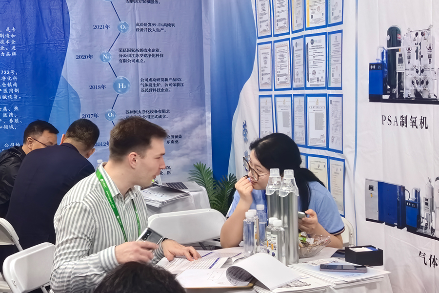 현장 이미지를 보면 당사 부스에는 산소 발생기, 질소 발생기, 고순도 산소 발생기, 가스 정화 장치, 가스 충진 장비 등 다양한 장비의 사진이 눈에 띄게 전시되어 있습니다. 또한 Jiangsu Luoming이 보유한 다양한 명예와 자격도 전시되어 있습니다. 에너지가 넘치는 당사의 전담 영업팀은 심층적인 산업 지식을 활용하여 방문 고객에게 최첨단 장비를 소개하고 있습니다.